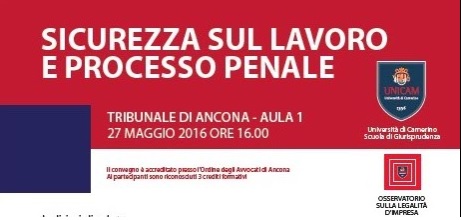 Convegno Sicurezza sul Lavoro e Processo Penale – Ancona 27 maggio 2016 – Tribunale di Ancona Aula 1 ore 16,00.