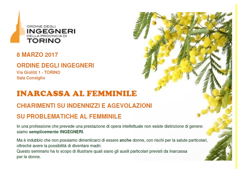 15.00 – Perché Inarcassa al femminile – le esperienze personali di due Colleghe (ingg. Fabrizia Giordano e Patrizia Vanoli)