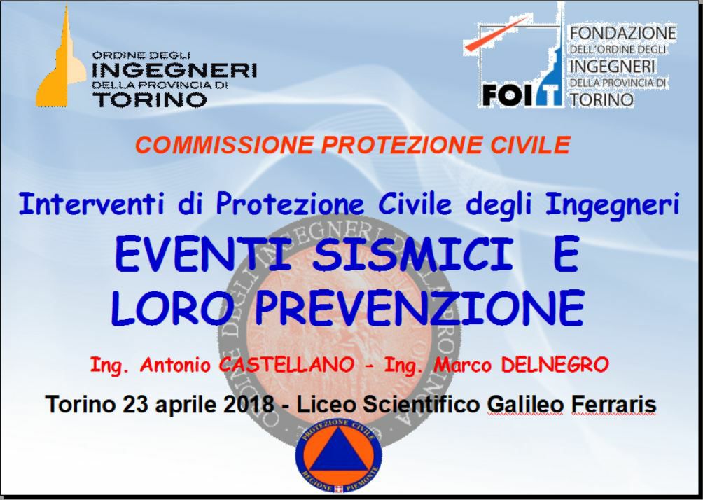 Al liceo Galileo Ferraris di Torino i Colleghi Antonio Castellano e Marco Delnegro hanno iniziato i giovani alla sicurezza sismica condividendo esperienze professionali e di protezione civile. Il professionista ha il dovere di portare un continuo contributo all’accrescimento culturale della società civile condividendo le sue conoscenze. I giovani acquisiscono così gli strumenti per meglio comprendere attivamente la realtà che li circonda, potendo criticamente contribuire al suo miglioramento.