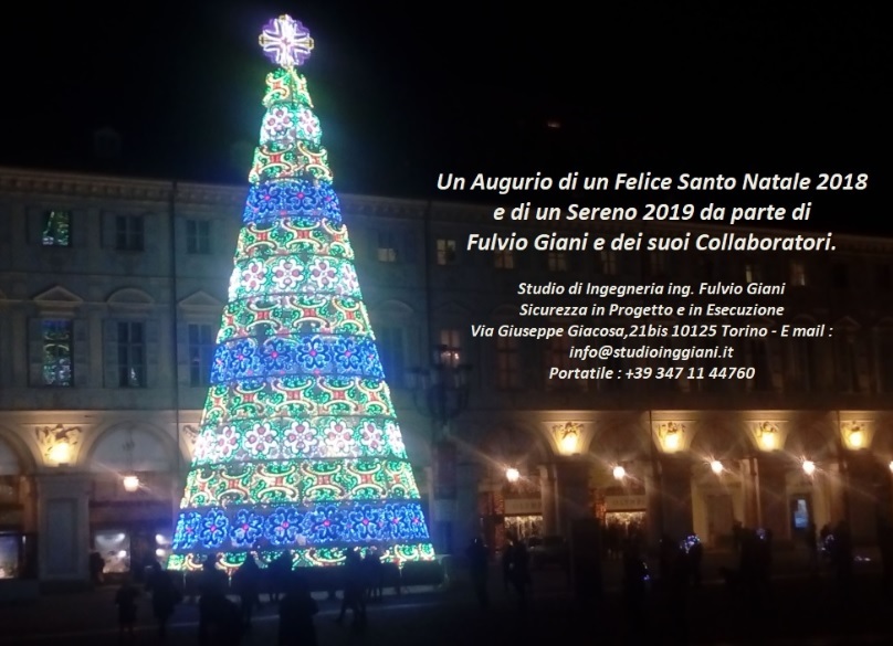 Dic212018Un Augurio di un Felice Santo Natale 2018 e di un Sereno 2019 da parte di Fulvio Giani e dei suoi Collaboratori. Naviga tra i postPrecedentePost precedente:RESPONSABILE DEL CONTROLLO E COORDINAMENTO DELLE ATTIVITA’ MANUTENTIVE DEI MATERIALI CONTENENTI AMIANTO.SuccessivoProssimo post:Crediti Formativi Ingegneri 2018.Articoli collegatiCoordinamento della sicurezza: realizzazione micropali con tubi autoperforanti – ing. Fulvio Giani.17 Aprile 2026Coordinamento della sicurezza: opere di saldatura sulle teste di pali di fondazione – ing. Fulvio Giani.12 Aprile 2026Coordinamento della sicurezza: parapetto temporaneo in cantiere – ing. Fulvio Giani.4 Aprile 2026Coordinamento della sicurezza: sollevatore telescopico in cantiere – ing. Fulvio Giani.28 Marzo 2026Ricerca Collaboratori24 Marzo 2026Coordinamento della sicurezza: verniciatura a spruzzo all’interno di un capannone in costruzione – ing. Fulvio Giani.20 Marzo 2026