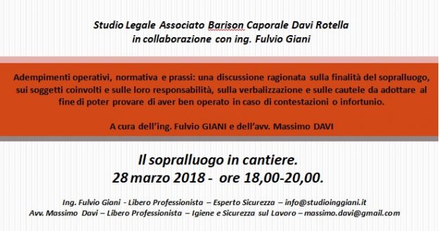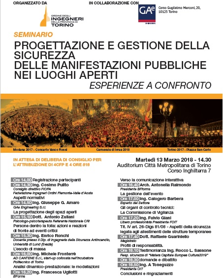 PROGETTARE LA SICUREZZA SUI LUOGHI DI LAVORO – Torino venerdì 13 luglio 2018.