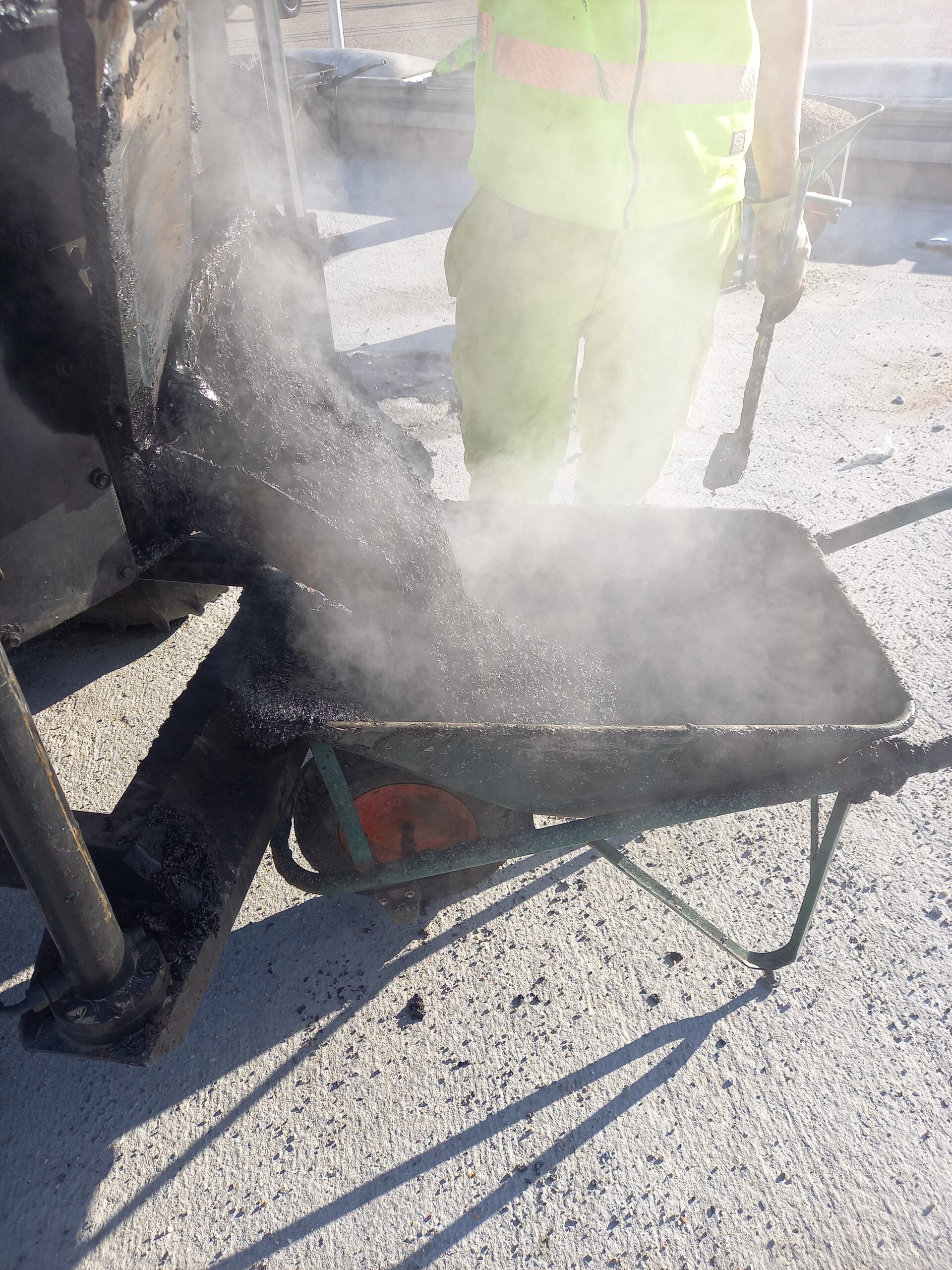 Nel corso dell’attività di coordinamento della sicurezza in un cantiere di ristrutturazione si affrontano attività di posa asfalto colato per la realizzazione della pavimentazione di una autorimessa. L’attività risulta così articolata. Arrivo in cantiere di chi eseguirà l’opera. Apposizione di segnaletica, delimitazione e recinzione dell’area di intervento. Preparazione del manto di pavimentazione con opera di fresatura superficiale dell’esistente, con lo scopo di livellare le irregolarità e di migliorare la capacità di aderenza. Spazzatura, asporto e smaltimento della risulta. Successiva applicazione di emulsione bituminosa. Posa di un sistema d’impermeabilizzazione, armato di tessuto non tessuto, che viene utilizzato sotto l’asfalto colato. Il sistema, resistente alle elevate temperature e a base di resine di polimetilmetacrilato a reazione rapida, consente una lavorazione rapida e impermeabilizza in maniera sicura tutti i giunti e i dettagli. Arrivo in cantiere di automescolatore mobile montato su autocarro contenenti miscela, ottenuta mediante il mescolamento a caldo di aggregati minerali con un mastice bituminoso con additivi o filler tale da aumentare le resistenze meccaniche della pavimentazione, la durezza e la scorrevolezza del prodotto. Trasporto della miscela di asfalto colato dal automescolatore al luogo di posa con bonze, o meglio con veicoli dotati di caldaia e mescolatore, che permettono di tenerlo alla temperatura di circa 250 °C, e quindi movimentato con una carriola. La posa in opera dell’asfalto colato carrabile, su sottofondo già predisposto, quindi è manuale ed avviene ad una temperatura di circa 250° C. Questa avviene inclinando la carriola e il colato viene rovesciato e steso a mano, con spatole di legno, provviste di una lunga impugnatura, fino ad ottenere uno strato di spessore di almeno 2,00 cm con superficie regolare. Successivamente viene fatta un’opera di compattazione con rullino. L’intera superficie del manto, immediatamente dopo la stesura dell’asfalto e mentre questo è ancora caldo, è ricoperta di graniglia calcarea o sabbia fine. L’aspersione è manuale e comporta successiva azione con il rullino compattatore a mano. Nel corso dell’esecuzione si verifica la delimitazione dell’area di intervento, la movimentazione macchine per il trasporto dell’asfalto e la successiva posa manuale previa movimentazione con carrette. Inoltre verifica che siano utilizzati sempre i dispositivi di protezione individuali previsti per bocca naso da parte di tutto il personale operante. Alta visibilità degli operatori per evitare rischi di investimento macchine operatrici. Rischi relativi all’uso di agenti chimici e cancerogeni, all’uso di macchine. Urti, impatti, compressioni, stritolamento, investimento di pedone, scivolamento e caduta a livello. Rischi di danni acuti da getti e schizzi con ustione conseguente, dovuti alla presenza di materiale ad alta temperatura. Attuazione di procedure per protezione e prevenzione in particolare per prevenire rischi da calore fiamme, da inalazione fumi, polvere e fibre.